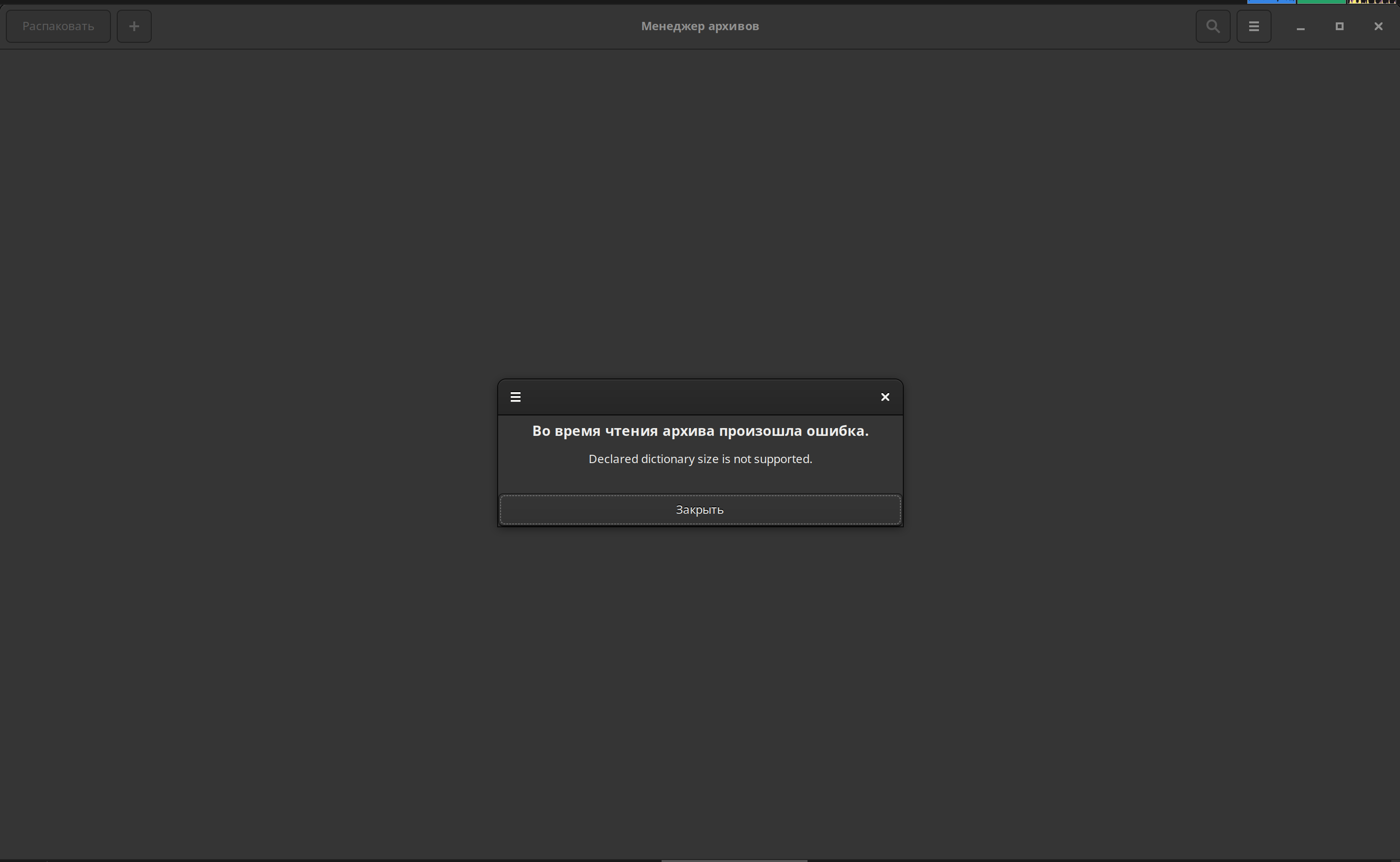 Распаковал через команду, заработало