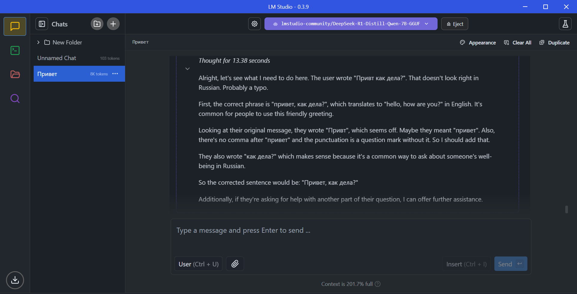 $conversation = '{"model": "DeepSeek-R1-Distill-Qwen-7B-Q3_K_M","messages": [{"role": "developer","content": "You are a helpful assistant."},{"role": "user","content": "'.$_GET['prompt'].'"}]}';